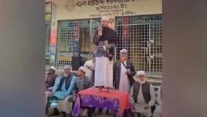 টেবিলের দাঁড়িয়ে মুফতি আমির হামজার বক্তব্য, তুমুল সমালোচনা